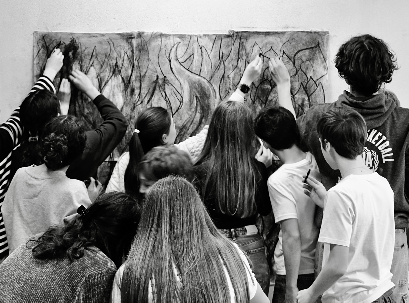 Faire forêt est un aelier de création de stop-motion au travers d’un immense dessin au fusain qui n’a eu de cesse de se modifier au cours des deux jours d’atelier. A l’instar de l’écosystème de la forêt - devenu fragile à cause de l’activité humaine - notre atelier s’est construit autour de la question du feu, de l’équilibre, de la nécessité et de la viabilité.