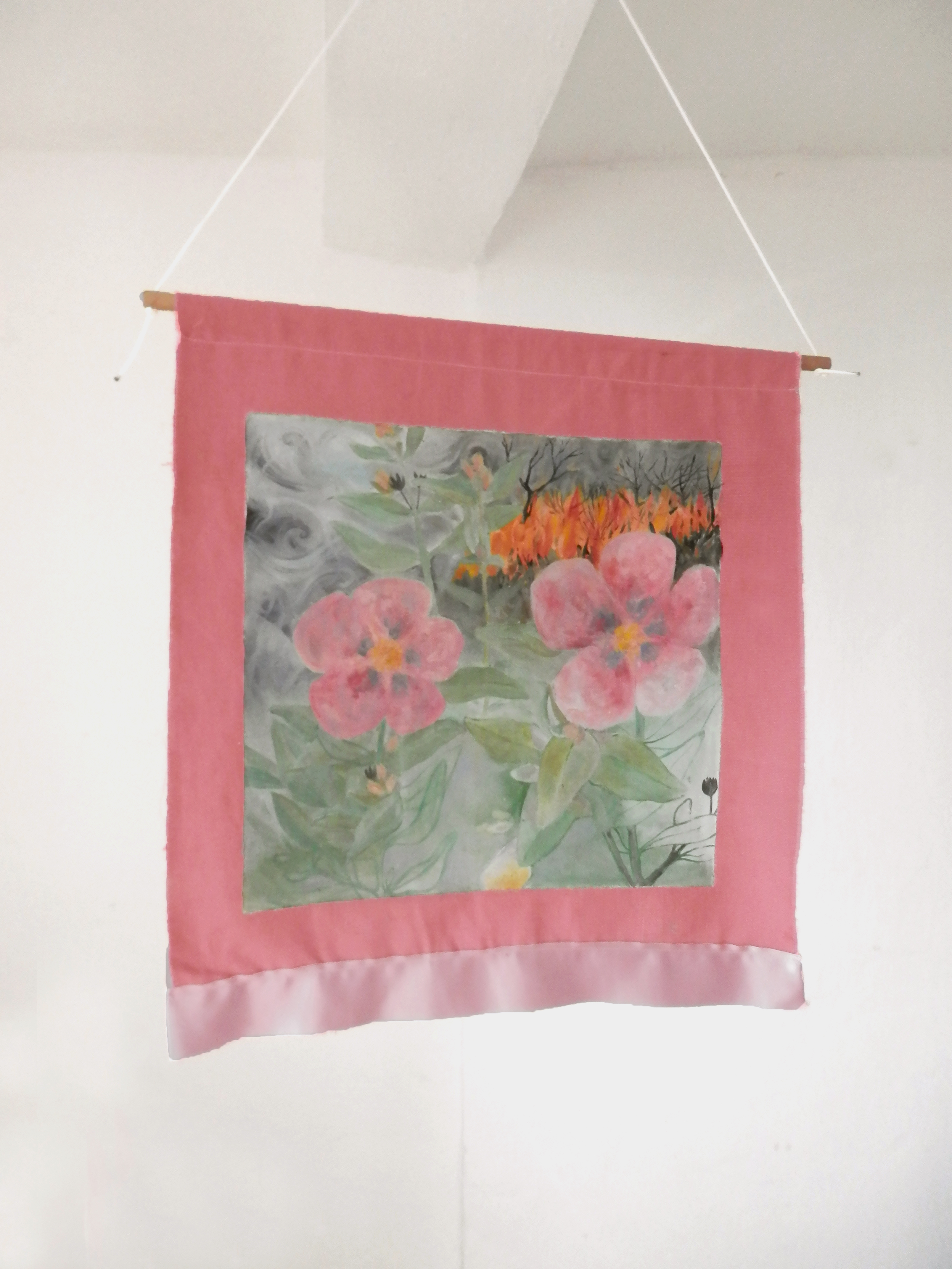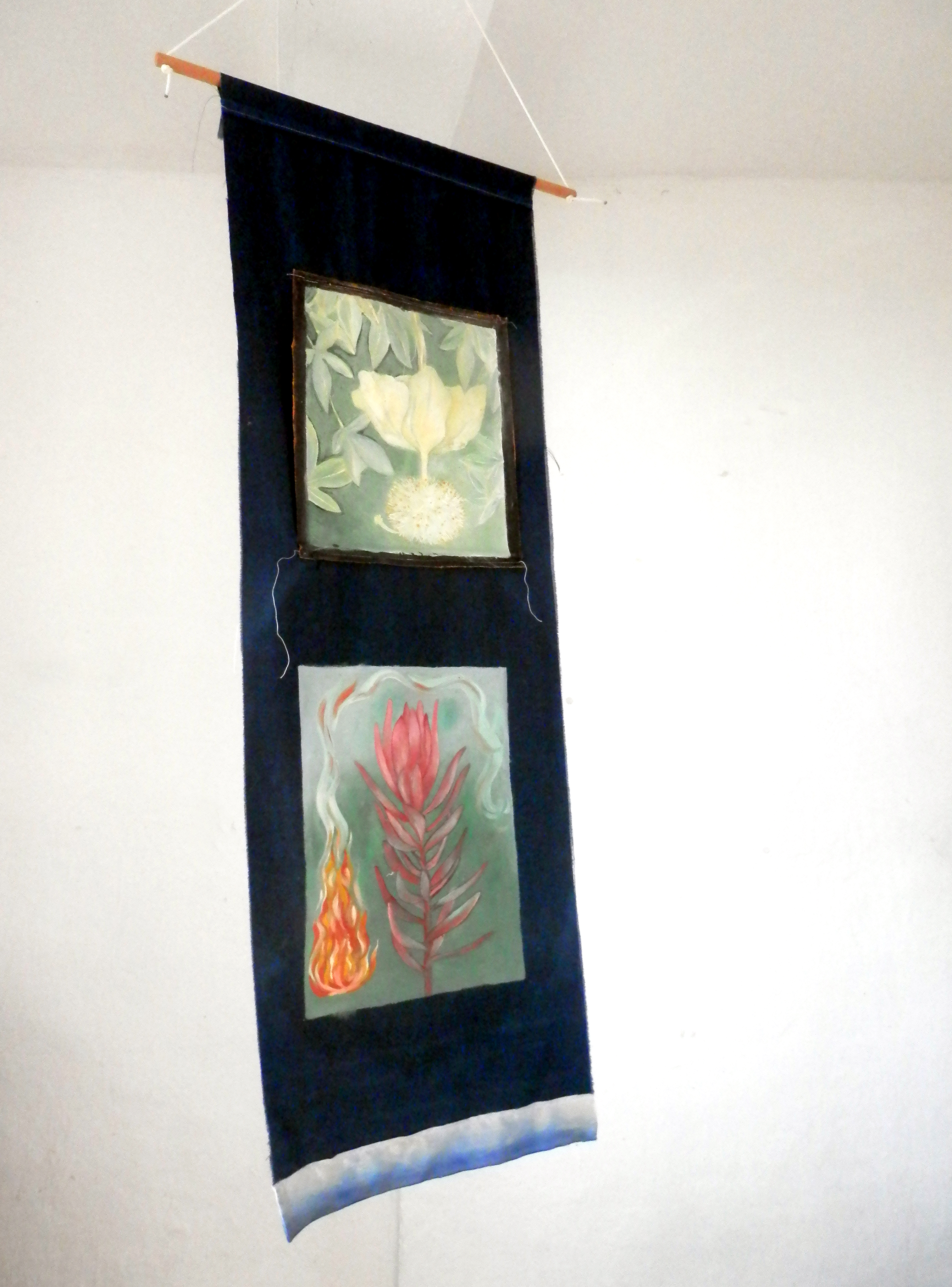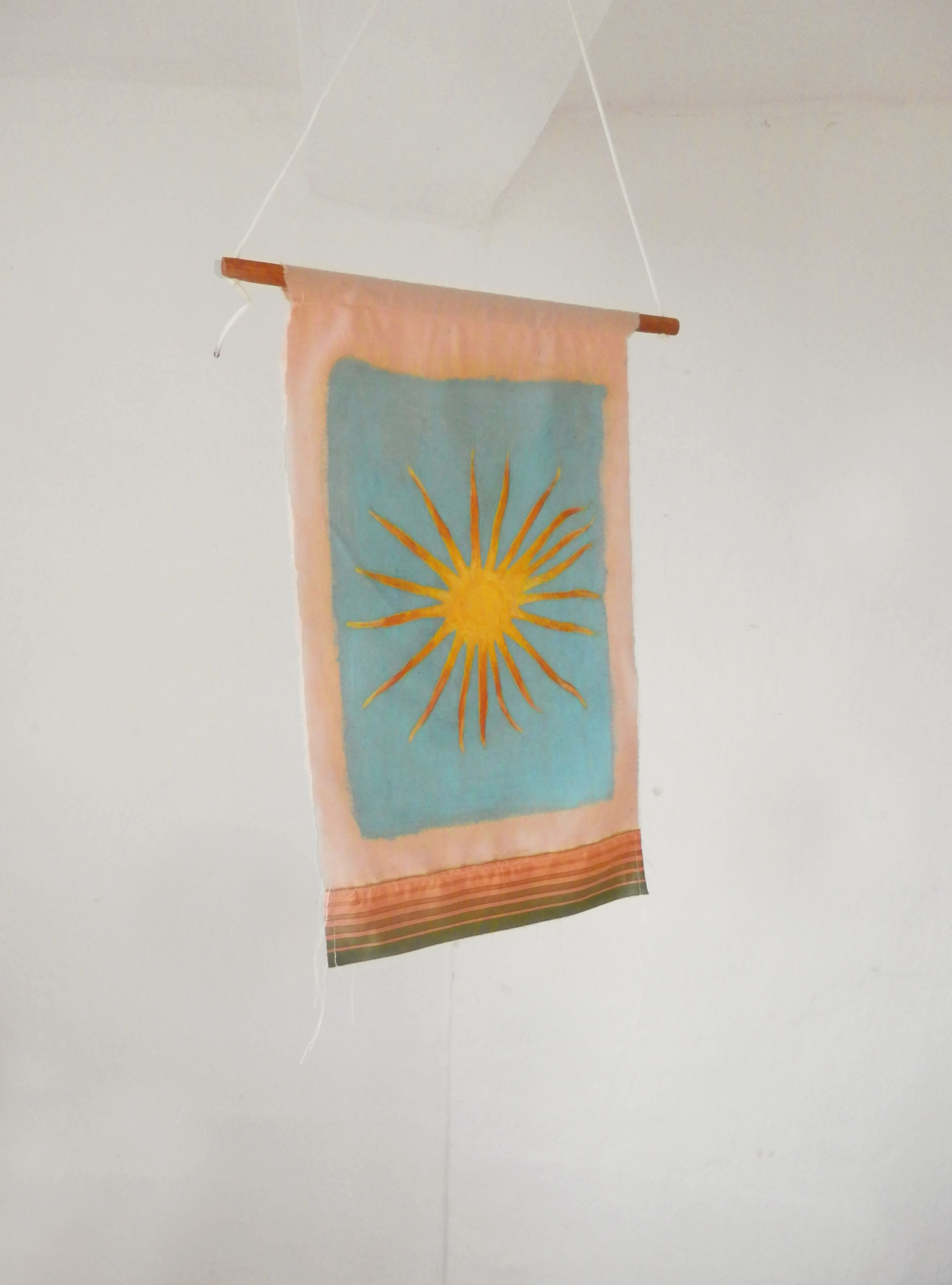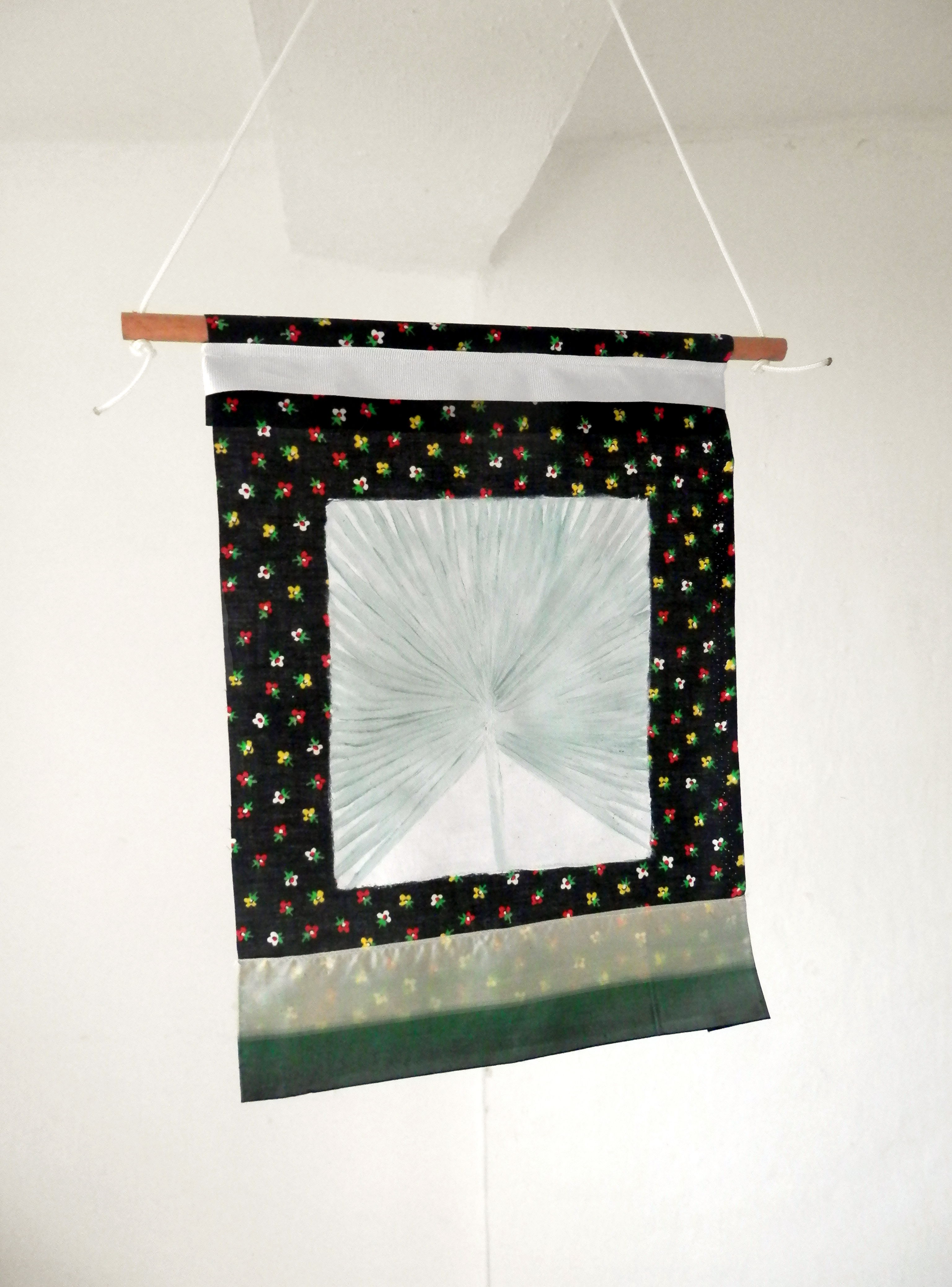 2024, drap de coton, teinture végétale, peinture naturelle, cyanotype, pièces de tissus recyclés, sangles